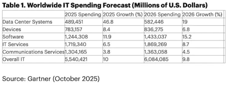 Worldwide IT spending is expected to total $6.08 trillion in 2026, an increase of 9.8% from 2025, according to the latest forecast by business and technology insights company Gartner.